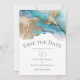 Save the Date Turquoise and Gold Ink Marble Invitation
