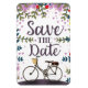 Save The Date Wedding or engagement vintage bicycle (or other celebration) flower art print. Wedding floral marriage illustration.