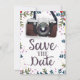 Save the Date Vintage Camera - Wedding engagement invite with a floral reef.