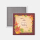 This square save the date wedding announcement magnet has an autumn fall foliage design. On the border, there are multi coloured leaves and swirls. In the middle, you can easily customise your wedding date and the names of the bride and groom.