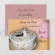 A funny wedding cake with a bride dragging the groom by the collar is the decoration for this nice Save the Date card. Totally customisable.