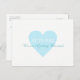 A simple and romantic wedding postcard for Save-the-Date announcements... featuring a pale blue heart on white background and with customisable lines of text... for invitations with a touch of simplicity and elegance