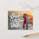 Postcard announcement of your wedding date. Use your full horizontal image with "Save the Date" superimposed on the photo. Optional dark gradient for white script to stand out if your background is too light. Just remove the gradient if you don't need it. Backside colour is customisable.