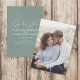 This beautiful design features save the date wedding green, modern elegant simple traditional, an engagement minimalist chic script, rustic stylish vertical classic, simple minimalist typography trendy, elegant modern calligraphy classy, with simple minimalist typography dark green, botanical modern hand lettering, full-bleed photo simple calligraphy, one couple picture photo card template,