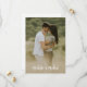 This design features save the date wedding elegant, stylish calligraphy cute unique, vintage handwritten beautiful simple, modern traditional minimalist minimal, photo couple picture 1 one, white text engagement chic trendy, whimsical script typography font, photo save the dates, engaged full photo bleed overlay, modern calligraphy handwritten script