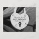 Save the date wedding postcard | Heart shape love lock. Black and white photo image with romantic heart on bridge. Great for reminding guests of your romantic wedding. Personalizable bride and groom name with elegant typography text. Photograph design.