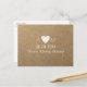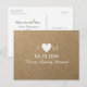 A simple wedding postcard with a rustic look (printed image of kraft texture) for Save-the-Date invitations... featuring a white graphic heart with customisable lines of text... with a touch of simplicity and elegance