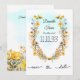This "Save the Date" card features a delicate and romantic yellow floral aesthetic. The design centres around a floral wreath made up of soft yellow and purple wildflowers with greenery, creating an inviting and nature-inspired vibe. The background is subtly shaded with a light sky blue, watercolor-like wash, adding a soft, calming atmosphere to the card.