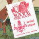 Save the Date Western Pink Cowboy Hat Chandelier Announcement Postcard