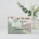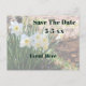 Lovely white early spring daffodils beside a bubbling brook flower photo Save The Date postcard. Fill in your information in the template. You can change or add any text as well as change font size, style, and colour. Please visit my gallery to see more flower, animal, and nature items.