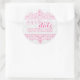 Save The Date White Damasks & Pink lace Classic Round Sticker