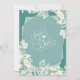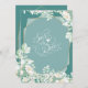 Wedding Save the Date | illustration of Wildflowers and Berries surround a sheer white gold edged geometric frame - any background colour can be used, just choose the customise further option and change background colour - we chose teal. A very ornate Save the Date calligraphy text in the centre front of this card - on the back is a combination of modern chic and calligraphy script fonts written details in in white.