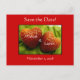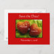 Two heart shaped strawberries to represent your love on a save-the-date postcard.