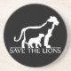 Save the lions! This artwork features a lion, lioness, and lion cub. It's recommended that this design be printed on darker coloured backgrounds. There is also an alternate black design with a white background.