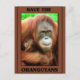An orangutan mother and her tiny infant with the words Save the Orangutans surrounding it.