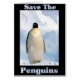 A lone penguin stands before a mountain of snow with the words Save The Penguins surrounding it.