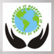 Save the planet earth and hands Poster. It features the Earth in green and blue with the text "Love it, protect it, respect it, save it" aroud it and hands that hold it with care.