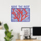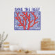 Vivid blue and orange design from an original prismacolor marker drawing by Angela Hoard-Dunn. This fun poster shows a cheerful reef scene that is colourful and whimsical. Lots of happy blue fish surround a bright orange coral and the message is "Save the Reef."