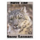 A close up of a snow leopard with the words Save The Snow Leopard surrounding it.