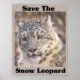 A close up of a snow leopard with the words Save The Snow Leopard surrounding it.