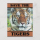 A close up of a tiger with the words Save the Tigers surrounding it.