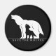 This is a black and white design of a howling wolf with her wolf pup. Many species of wolf (including the Grey Wolf) are still endangered. Text reads "Save the Wolves." This design can be personalised by adding your own text or images.
