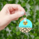 In this graphic key ring Save the turtles logo rises like the sun over a beach full of nesting sea turtles.