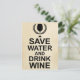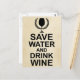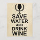 Save Water and Drink Wine. It's a humourous plea to save water, based on the ubiquitous "Keep Calm" poster introduced by the British government in 1939. This design is presented over an aged paper background. It can easily be deleted and replaced with a rainbow of light colour choices.