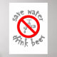 A funny drinking design with the traditional crossed red circle protest sign sitting on top of a dripping water tap. Curved around the top of the circle are the words “Save Water”. Underneath the circle are the words “Drink Beer” in grey. A fun design on lots of different products.