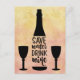 Save Water Drink Wine Black Bottle Two Glasses Postcard