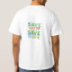 The eye-catching t-shirt design features the message "Save Water, Save Life" in a vibrant multicolor scheme. Each word is a different colour, creating a dynamic and playful visual. The design avoids any images of people, focusing solely on the impactful message in a captivating colour combination.