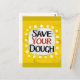 "Save Your Dough" is a fun text design with a white accent shape surrounded by white whimsical textured dots.