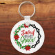 Saved by His Grace Christmas Wreath Keychain. This beautiful keychain is a great way to show your faith in Christ. It is a reminder that we are saved by His grace. The keychain is red and green, the colours of Christmas. It is a great gift for a friend or family member who is a Christian.
