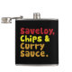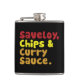 Saveloy, Chips & Curry Sauce. Hip Flask