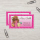 Hot pink leopard print background with Savvy Shopper woman character standard business card.
