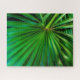 The beautiful green, original photograph by ZoeSPEAK on this Jigsaw Puzzle is a closeup of a saw palmetto frond spreading out of the woods towards the sunlight. It looks like the palms used to fan royalty in earlier times.