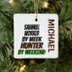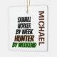 This unique ornament featuring the quote "Sawmill Worker by Day Hunter by Weekend" is perfect for any sawmill worker that loves hunting.