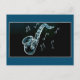 modern blue and black free style drawing in white of a saxophone with music notes.