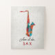 Bright, colourful Saxophone design that says "Above all else… Saxophone". Warm colours of red, orange, turquoise and aqua in a watercolor style pattern on a neutral background.