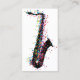 A bright and totally cute saxophone design featuring a black saxophone with tons of colourful confetti including stars and geometric shapes, festive as a party!