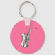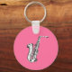 Design with charcoal illustration of saxophone on pink background; elegant simple jazz musical instrument design