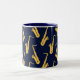 Saxophonists will love this cool mug which features a pattern of saxophones, on a deep blue background.