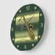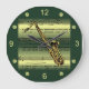 Saxophone~Rolled Sheet Music~Gold/Green Background Large Clock