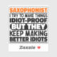 Funny Saxophonist Sayings "Saxophonist I Try To Make Things Idiot Proof But They Keep Making Better Idiots". Grab this Funny Saxophonist design as a funny gifts for an awesome mum, dad or friend.