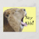 A fun, unique and attention-getting funny postcard with an original photo of a male lion with his mouth wide open, and his tongue sticking way out with "Say Ahh!" in loud bold text blasting right next this King Of The Jungle's open mouth showing his big teeth. A perfect postcard for patients for dentist offices for dental appointment reminders and great for veterinarian office. Also great for other doctor's offices check up reminder appointments. Perfect for paediatrician's offices, even veterinary offices. Easily put in your custom information on the back~ delete all if none is needed. Light yellow background colour on both sides of the card can easily be changed to any colour. Just click on "Customise it" and then "edit" and then "background" to change to any other light colour.