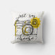 The easiest way to change to look of any home is with pillows. This fun photography inspired pillow features a hand drawn old school style retro camera with "Just Say Cheese" printed in a script font.