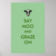 Say Moo and Graze On Funny Cow Joke Poster Print. A funny cow joke poster with a dairy cow head and fully customisable text slogan "Say Moo and Graze On". This great funny cow poster print is fully customisable, add your texts and images! A great cow gift for the big cow fans!