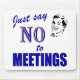 Just Say No To Meetings, funny office humour sarcasm in red retro letters with a co-worker reminding you not to get trapped in a meeting at work