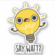 Say Watt Funny Light Bulb Pun features a cute light bulb . Perfect pun gift for family and friends who love cute electric light bulb puns.