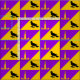 “Per bend sinister purpure and or, a lighthouse or and a bird sable." Allover pattern of the populace badge for the Shire of Avonmore in the Society for Creative Anachronism.